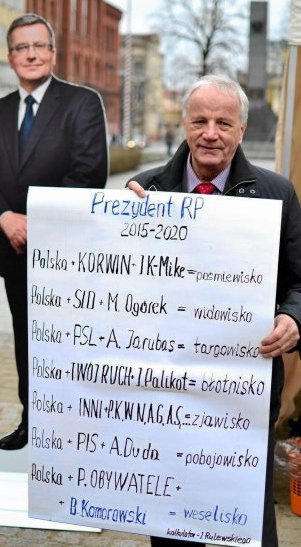 Senator Jan Rulewski zaskakując zgromadzonych nie powiedział za wiele, jedynie rozwinął plakat „Kalkulator wyborczy”.