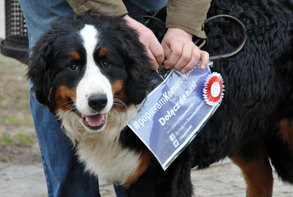 Z lewej: konferencja prasowa na Placu Wolności, Z prawej: pies Pana Jankowskiego popierający akcję "#popieramKomorowskiego". Zdjęcia: Agnieszka Michalska