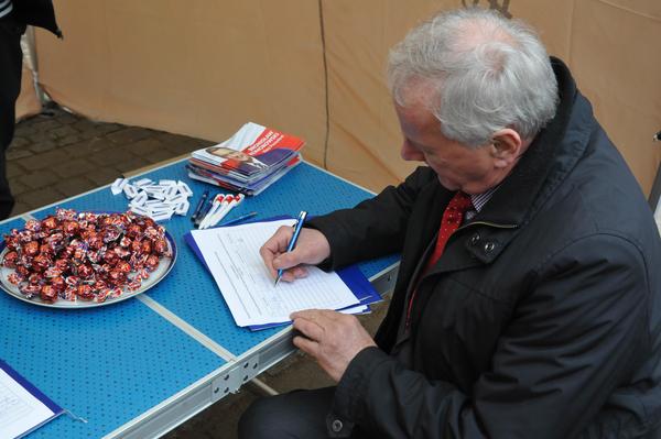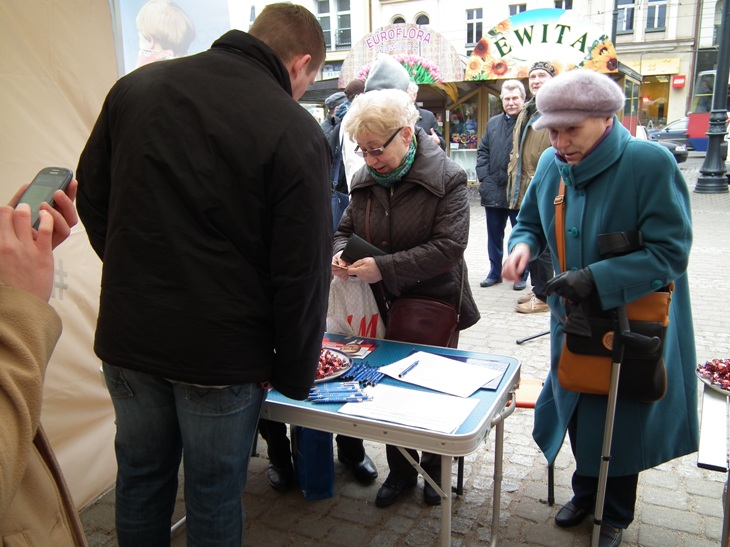 Po konferencji prasowej nadal kontynuowaliśmy zbieranie podpisów poparcia. Każdy mógł się napić gorącej kawy, poczęstować cukierkiem oraz … zrobić zdjęcie z Prezydentem Komorowskim.