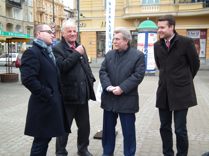 Z lewej: Mieszkańcy Bydgoszczy jeszcze przed oficjalnym rozpoczęciem zbierania głosów stali w kolejce, aby swoim podpisem wesprzeć Prezydenta Bronisława Komorowskiego. Z prawej: radny Jakub Mikołajczak, Senator Jan Rulewski, Senator Andrzej Kobiak, radny Piotr Kosłowski. Zdjęcia: Agnieszka Michalska