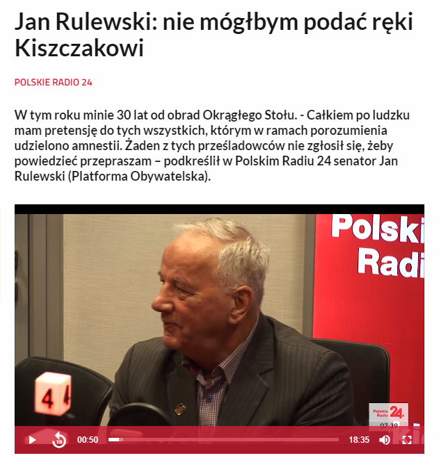 24.01.2019-Jan Rulewski: nie mógłbym podać ręki Kiszczakowi. Wydawnictwo : Polskie Radio