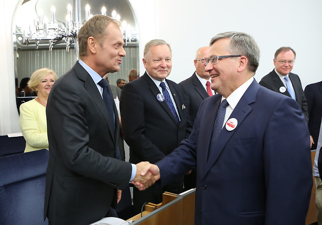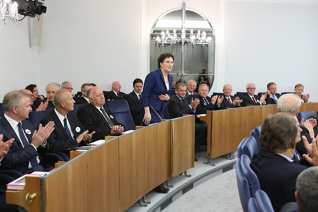 Część uroczystą zaszczycili: prezydent Bronisław Komorowski, premier Donald Tusk, marszałek Sejmu Ewa Kopacz, marszałkowie Senatu poprzednich kadencji oraz senatorowie I i VIII kadencji, prezes Trybunału Konstytucyjnego Andrzej Rzepliński, a także przewodniczący niemieckiego Bundesratu Stephan Weil. Na początku posiedzenia uczestnicy uczcili minutą ciszy wszystkich zmarłych senatorów. Z Bydgoszczy przybył Antoni Tokarczuk.