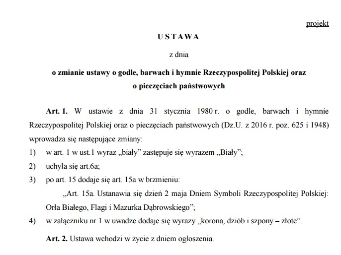 2 maja Dniem Symboli Rzeczypospolitej Polskiej: Orła Białego, Flagi i Mazurka Dąbrowskiego
