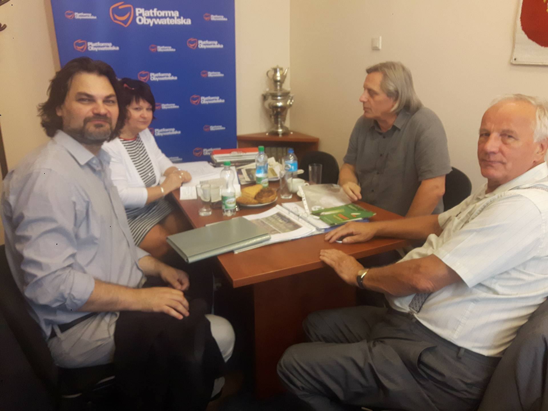 Od lewej: Pan Marek Iwiński – Plastyk Miejski, Pani Kierownik z ADM-u Pan, Pan Sławomir Marcysiak – Miejski Konserwator Zabytków i Jan Rulewski, Senator RP. Fot: Agnieszka Michalska.