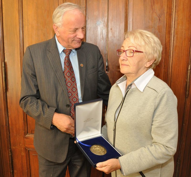 Medal Senatu dla zasłużonej radnej Elżbiety Sarnowskiej. (Fot. Marcin Zieliński)