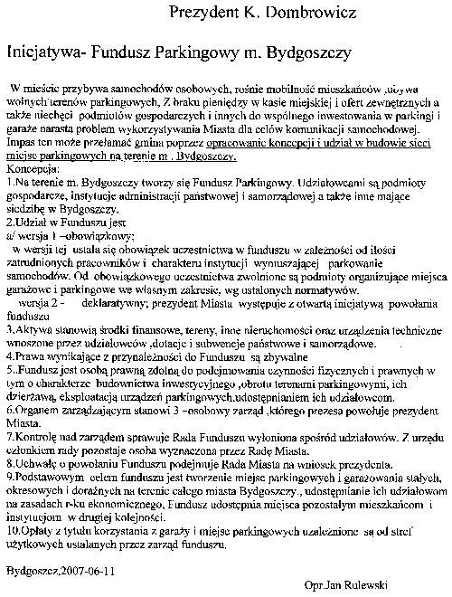 Inicjatywa - fundusz parkingowy miasta Bydgoszczy