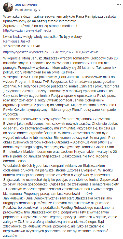 piątek, 31 sierpnia 201831.08.1980 to data ale czas narodzin.Zamieszkali od 1000 lat w dorzeczu Wisły i Odry, zaledwie zawieszeni między żelazną kurtyną a bolszewicką Moskwą ruszyliśmy ,milionowe drobiny ,w zakładach pracy,marne jednostki planistyczne w PRL/PZPR.Jednostki przypomniały sobie ,że są przede wszystkim ludźmi i wywalczyli cześć praw człowieka;do związków zawodowych,praktyk religijnych,życia bez cenzury, świadczeń rodzinnych.A wiec to wszystko co godne jest człowieka nawoływał już z Rzymu inny robotnik Papież Jan Paweł II.A świat zastygł w niedowierzaniu.Jak można rozwiązać” kwadraturę koła „ pytali Anglicy .W systemie totalitarnym zbudować komórki wolności.Odpowiadaliśmy zawadiacko,gorsząc budowniczych Porządku Jałtańskiego „a jak można żyć bez wolności „odpowiadaliśmy.I zbudowaliśmy związek jakiego nie było na świecie.Solidarność.Nie zmogły go tanki Jaruzelskiego wsparte siłami Układu Warszawskiego .Wygraliśmy bez przemocy i gwałtu.Zamiast odwetu ,budowa domu dla wszystkich .Ale tym razem świat uwierzył i pomógł.Więcej ,uznał,ze światu potrzebna jest taka Polska.A człowiek ? Już z pełnią praw do budowania swojej pomyślności w kraju iż dala od niego .Nie wierzyłem,że jeszcze za życia ,doczekają się owoców swej walki.Rożnych.Własności osobistej i majątkowej swobody twórczej,ochrony pracy,podróży po całym świecie za własne pieniądze .Wprawdzie nie dopłynęliśmy do Indii po złoto ,codzienne życie pełne jest trudności i ryzyka ale przemy do przodu ,niezależnie od politycznej pogody.Ten sukces wabi złodziei ,chcą ukraść nasza historię ,zakrzyczeć świat nędznymi archiwami,pomnikami i jak za ,komuny ,krzykliwą propagandą.Jest jeszcze wiele deficytów.Z biegiem lat ustąpią .Najbardziej jednak doskwiera deficyt solidarności.O ile byłoby lżej gdybyśmy choć w części poświęcili swoje ja na my.Na wsi,w dzielnicy,w Warszawie i Wąchocku.Filozofia dobra wspólnego ,tak bliska ,solidarności nadal zmaga się z naszym indywidualizmem.Mimo to jestem dumny z dokonań i wdzięczny tym wszystkim dzięki którym mogłem się narodzić.Gratuluję Wam odwagi,poświęcenia,zrozumienia i zaufania.
