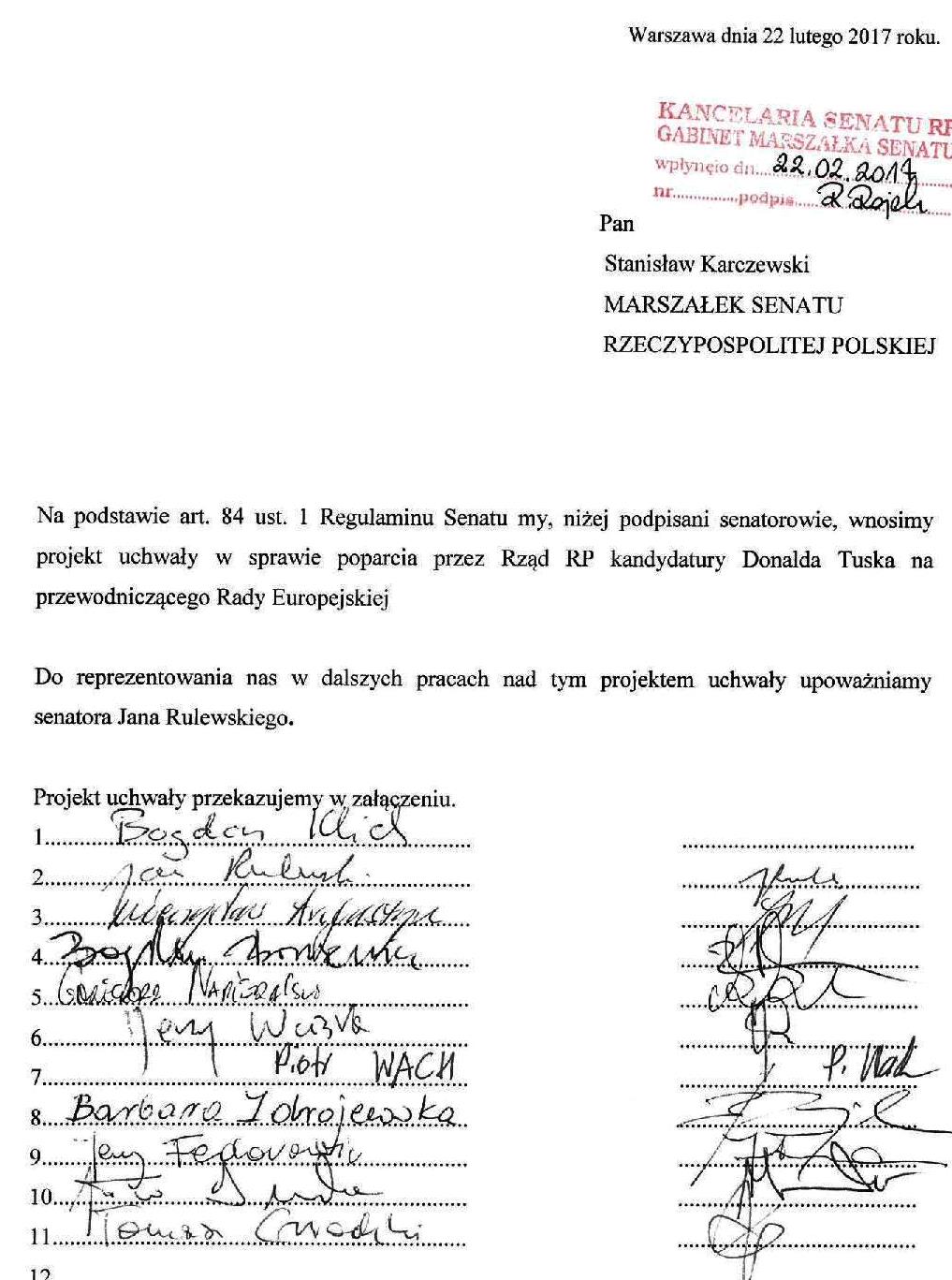 Uchwała ws Donalda Tuska - Przewodniczącego Rady Europejskiej.