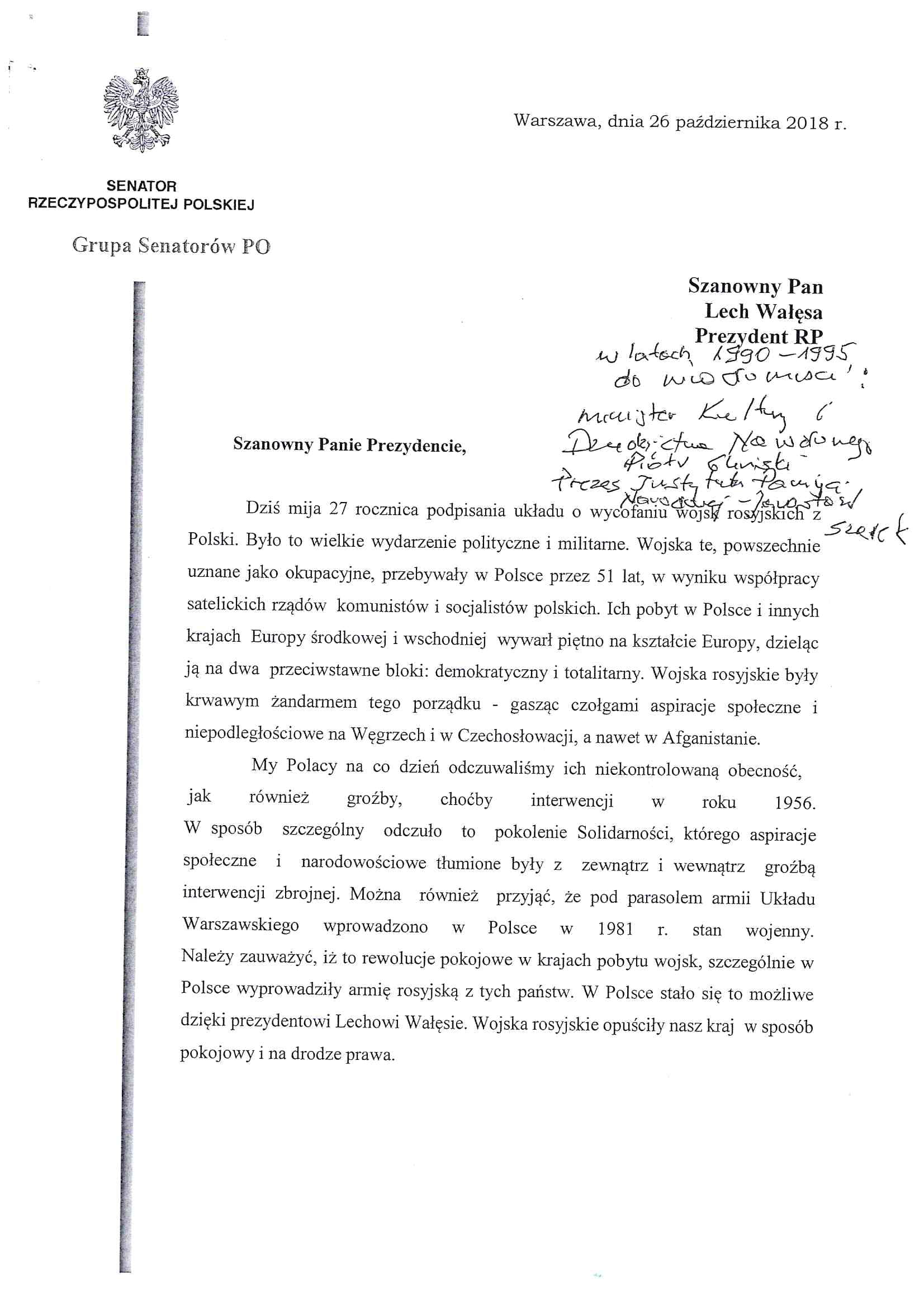 sobota, 27 października 2018Oświadczenie grupy senatorów po złożeniu na wczorajszym posiedzeniu Senatu przez senatora Jana Rulewskiego