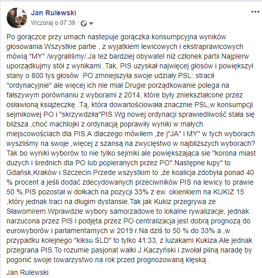 wtorek, 16 października 2018Rulewski o plakacie z politykami PiS: Propagowanie ideologii faszystowskiej jest konstytucyjnie zakazane