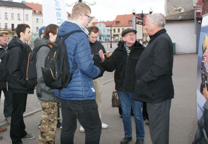 Rozmowy między pokoleniami. Drugi od prawej p. Aleksander Bednarek (dawny działacz "S" z regionu Mogilno)