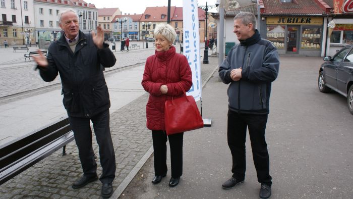 Senator Rulewski w towarzystwie p. Marii Sokołowskiej (przewodnicząca KZ „S” w Zespole Opieki Zdrowotnej) i p. Andrzeja Dargacza (prezes inowrocławskiego oddziału PTTK oraz Inowrocławskiej Lokalnej Organizacji Turystycznej).