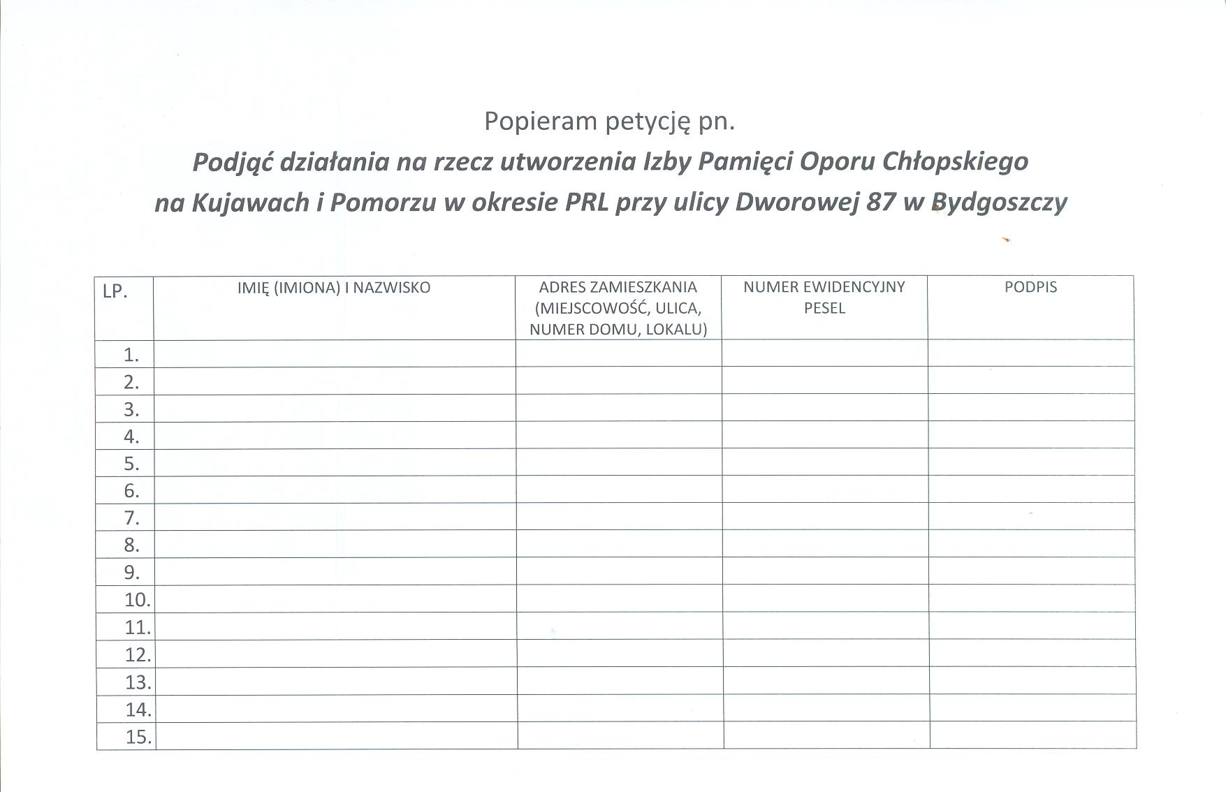 Szanowni Państwo, aby powstała Izba Oporu Chłopskiego potrzebne jest Państwa wsparcie, na które liczę. Poniżej znajduje się lista, którą z łatwością można wydrukować. Podpisane listy proszę przesłać na adres naszego biura: