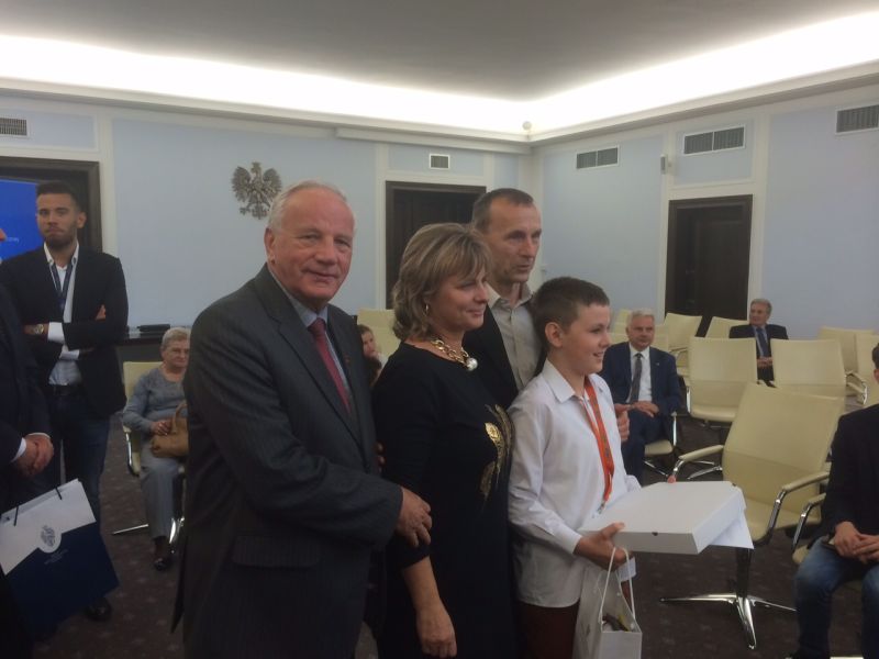 Nagrodzony Paweł Betin wraz z rodzicami i senatorem Janem Rulewskim. (Fot. Ireneusz Niewiarowski)