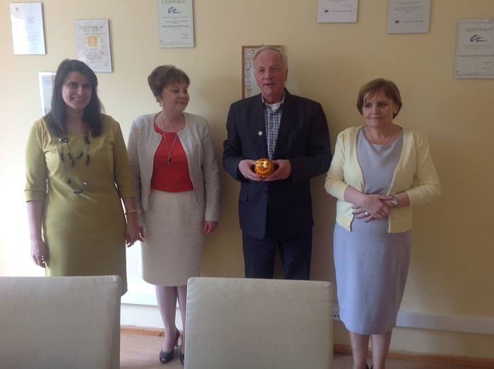 Wizyta w Domu Pomocy Społecznej "Ostoja". Od lewej: Kierownik Działu Seniorów MOPR Pani Ewa Bartkowiak, Zastępca Dyrektora MOPR Pani Marlena Jasnoch, Senator Jan Rulewski, Dyrektor DPS "Ostoja" Pani Ewa Zawadzka