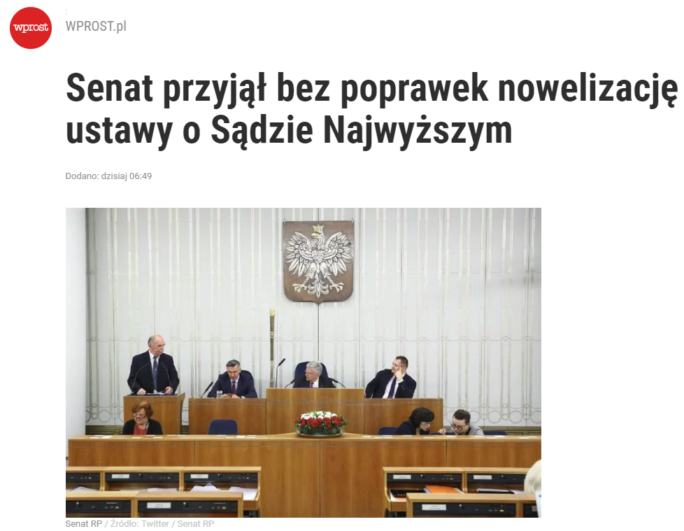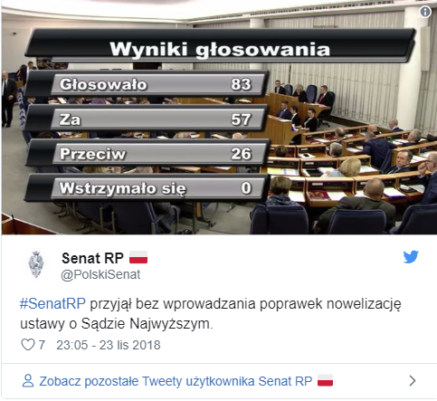 Senacka komisja rekomenduje Izbie przyjęcie nowelizacji ustawy o Sądzie Najwyższym bez poprawek.