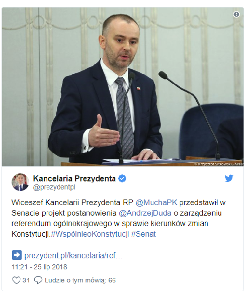 25.07.2018 - Senat: Mucha apeluje o wyrażenie zgody na referendum konstytucyjne Dudy.-dziennik.pl