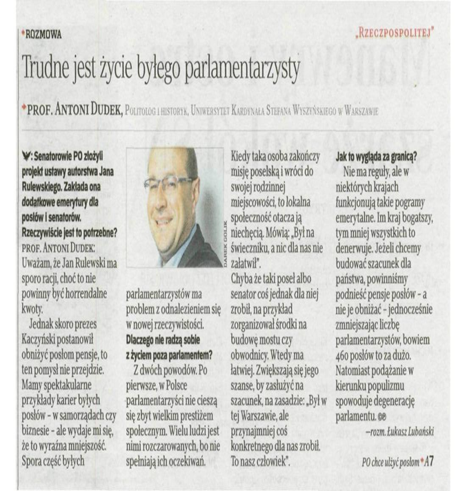 Prof. Antoni Dudek: Trudne jest życie byłego parlamentarzysty