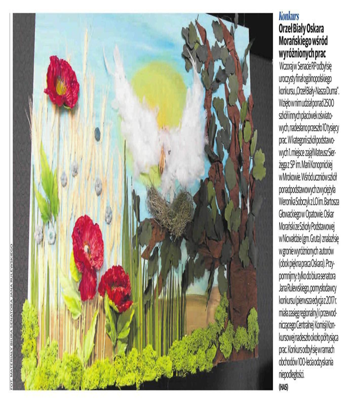 08.05.2018r - Konkurs Orzeł Biały Oskara Morańskiego, wśród prac wyróżnionych. Wydawnictwo : Gazeta Pomorska