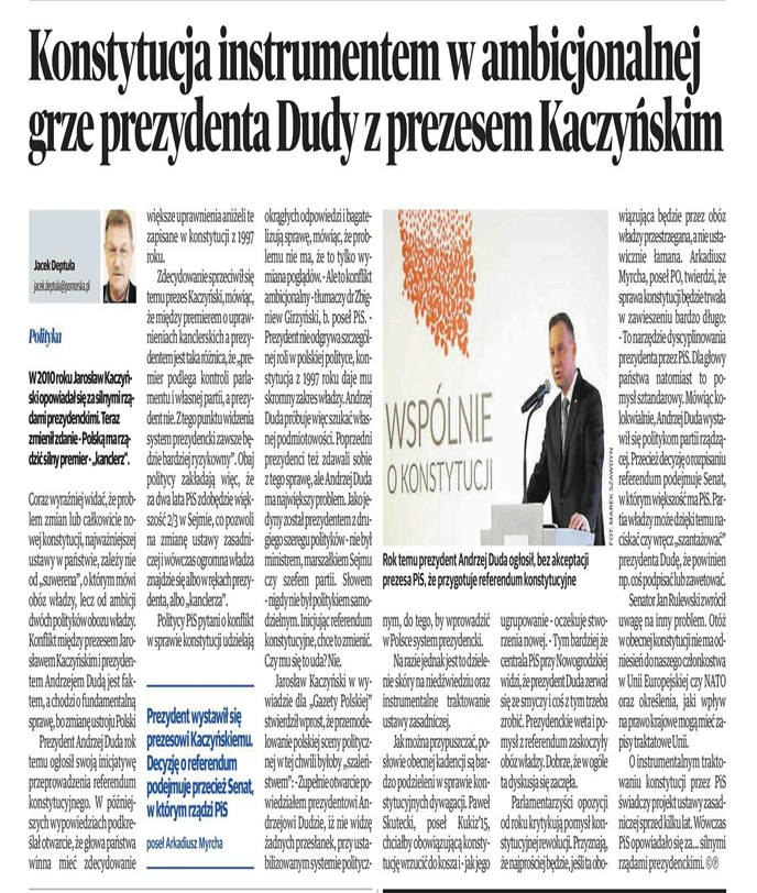 02.05.2018 r - Konstytucja instrumentem w ambicjonalnej grze prezydenta Dudy z prezesem Kaczyńskim. Wydawnictwo : Gazeta Pomorska