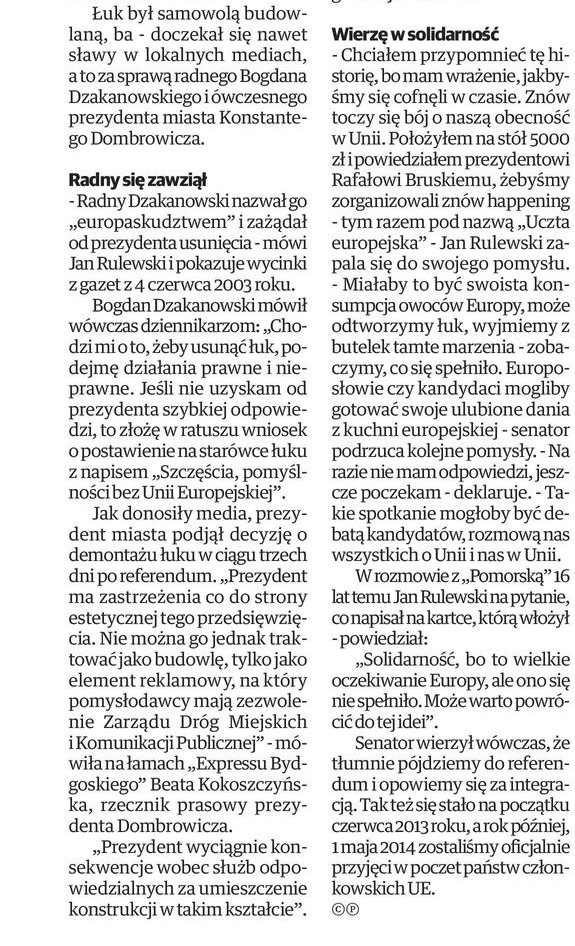 30.04.2019- Łuk Europejski. Wydawnictwo: Gazeta Pomorska