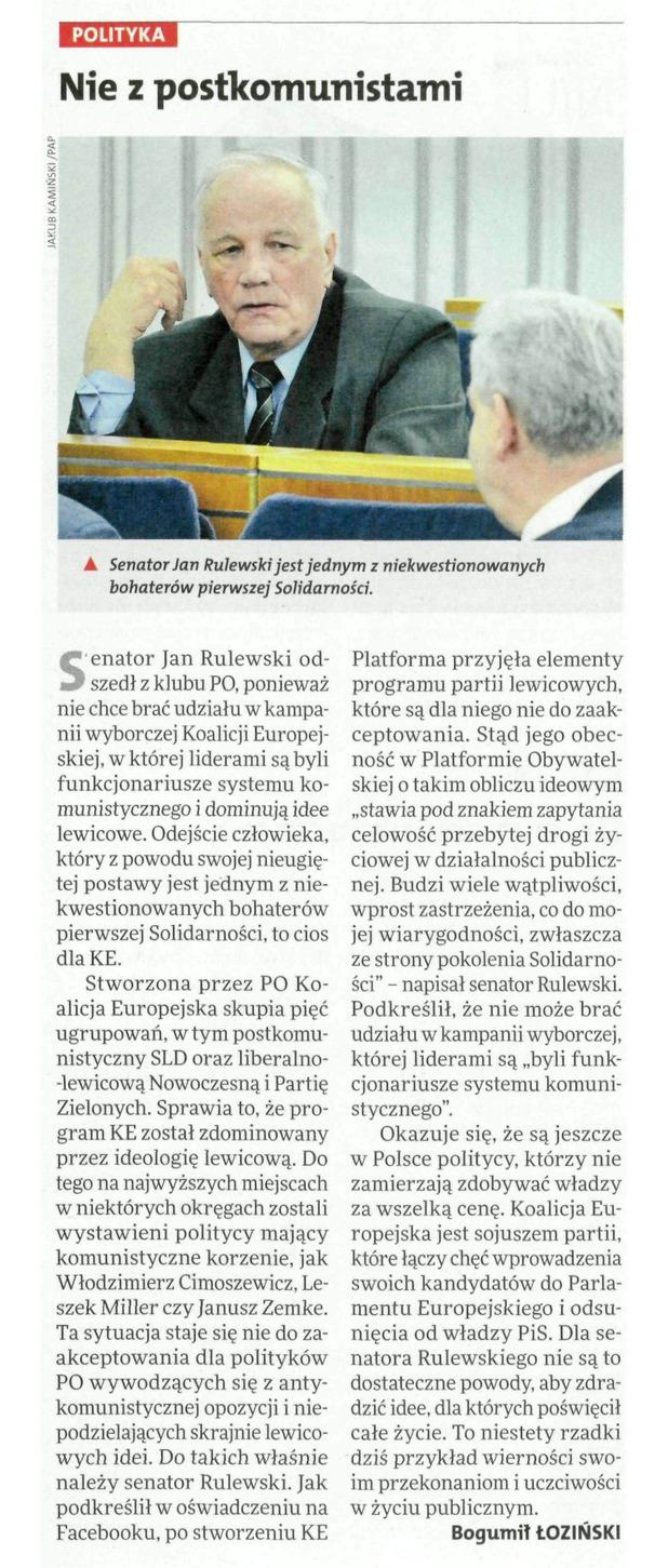 11.04.2019- Rulewski: Wychodzę z klubu parlamentarnego PO. Wydawnictwo: Interia-fakty