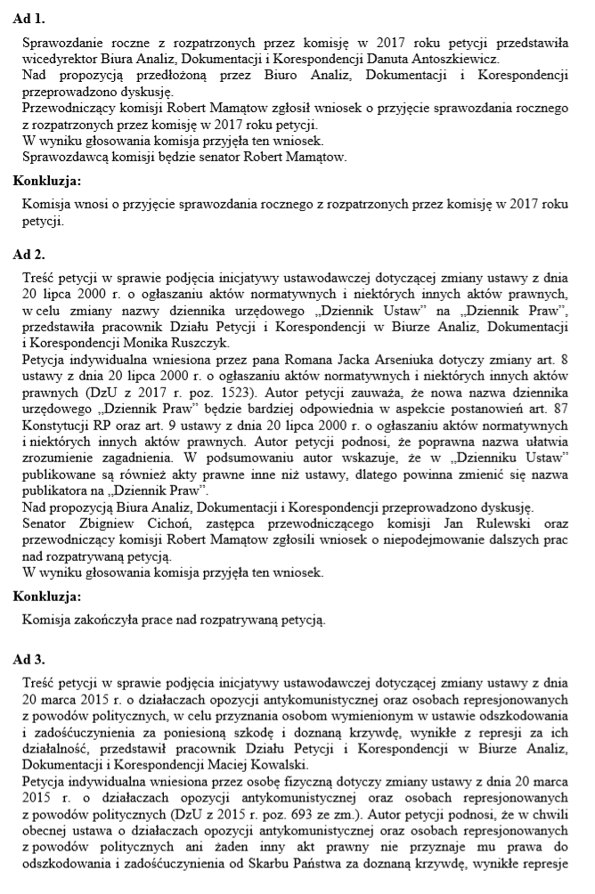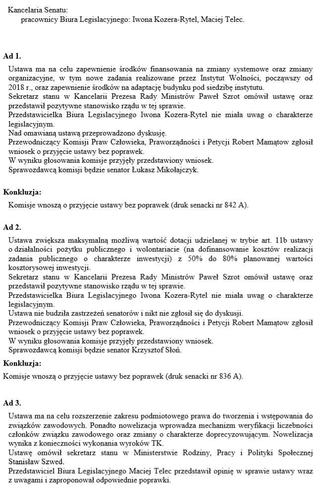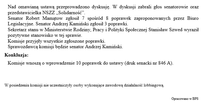 Sprawozdawcą komisji na posiedzeniu Senatu będzie senator Andrzej Kamiński.