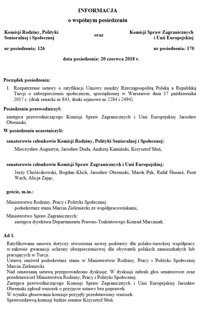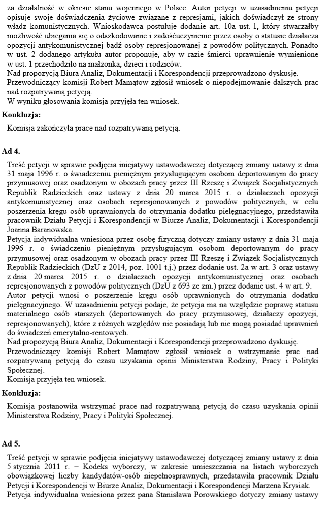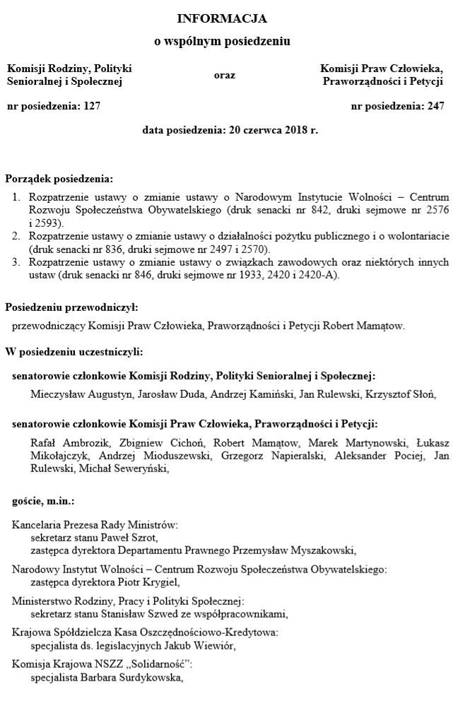 Posiedzenie Komisji Rodziny, Polityki Senioralnej i Społecznej oraz Komisji Praw Człowieka, Praworządności i Petycji w tej sprawie odbyło się 20 czerwca 2018 r.