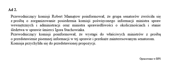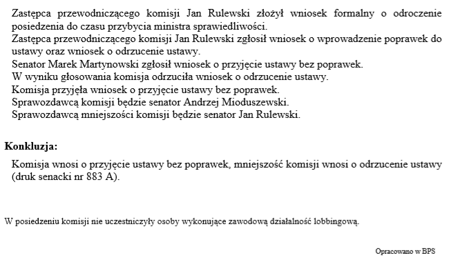 Sprawozdawcą komisji na posiedzeniu Senatu będzie senator Grzegorz Peczkis.